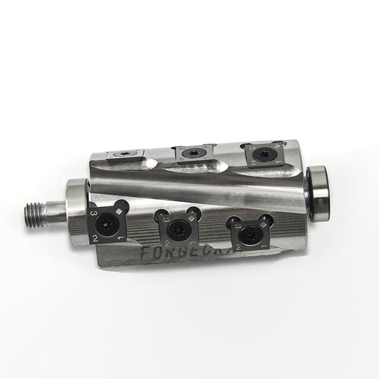 Expertly engineered for unmatched precision, this advanced cutterhead creates a superior shear cut, virtually eliminating chip-outs and ensuring an exceptionally smooth, flawless finish every time.
